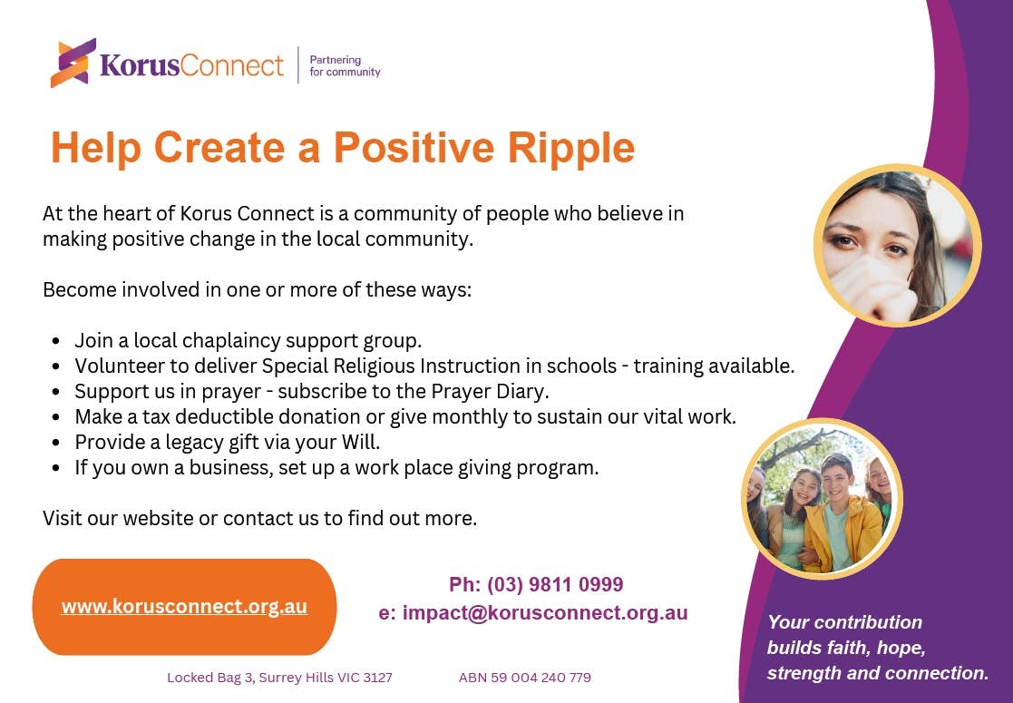 As we gather in the presence of our creator God, Korus Connect acknowledges the traditional custodians of the land upon which we meet. In His wisdom and love, our Heavenly Father entrusted this land to the stewardship of the Wurundjeri Woi-wurrung people. As we continue to learn to live together, we acknowledge and pay our respects to their elders, past and present, and pray that God would help us all to preserve and steward these resources well.